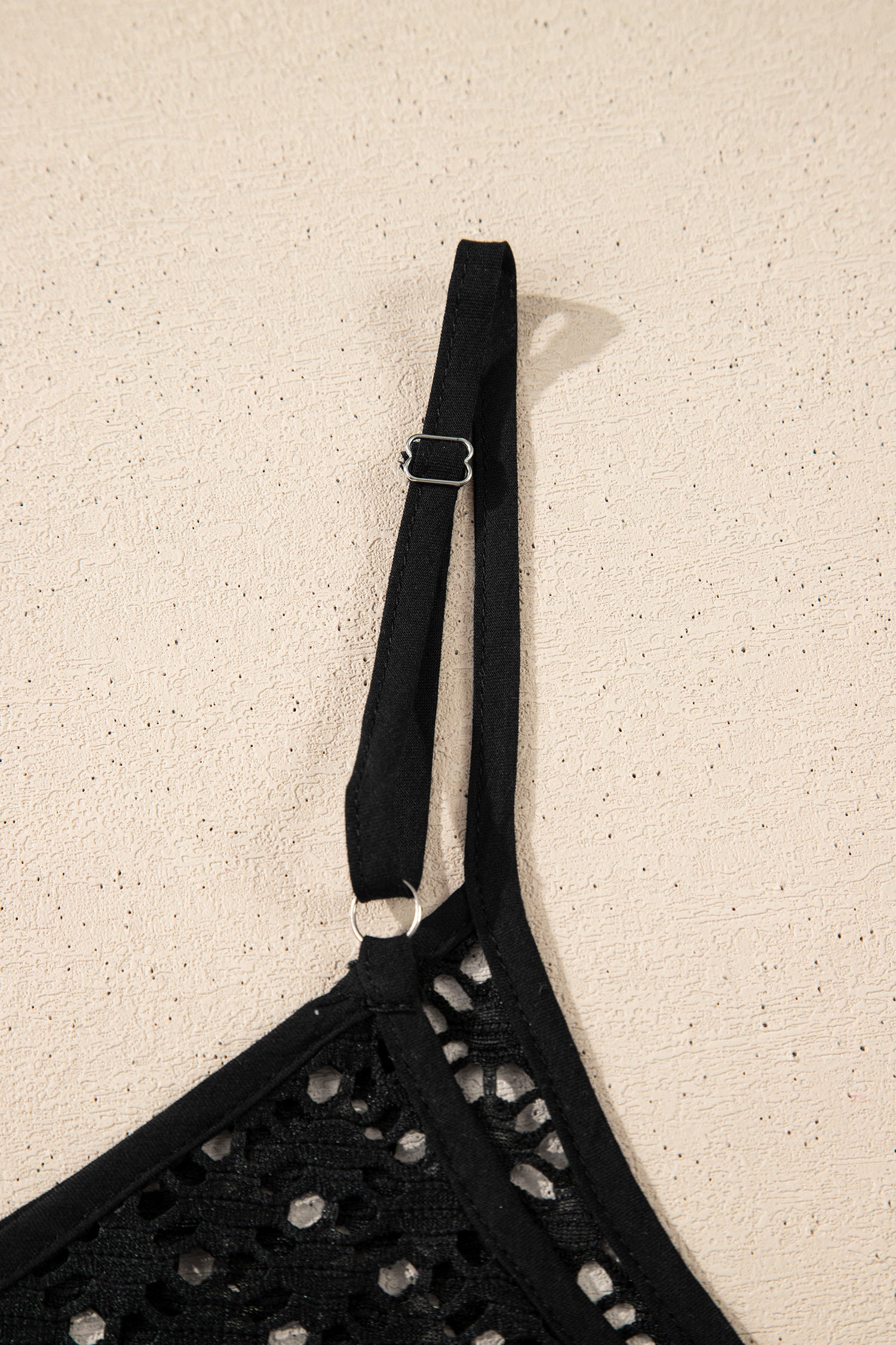 Black See Through Patterned Knit Ruffle Hem Patchwork Beach Cover Up
